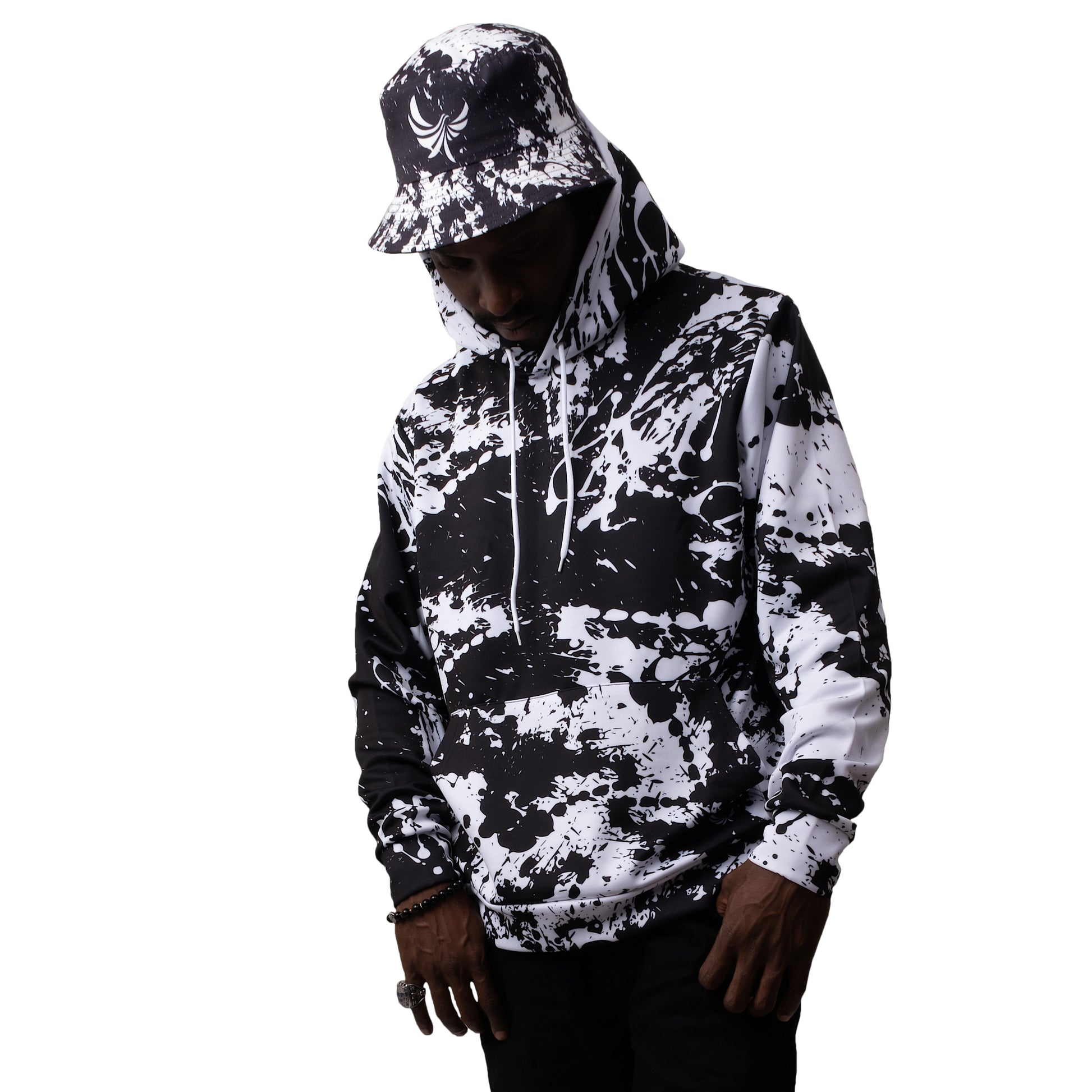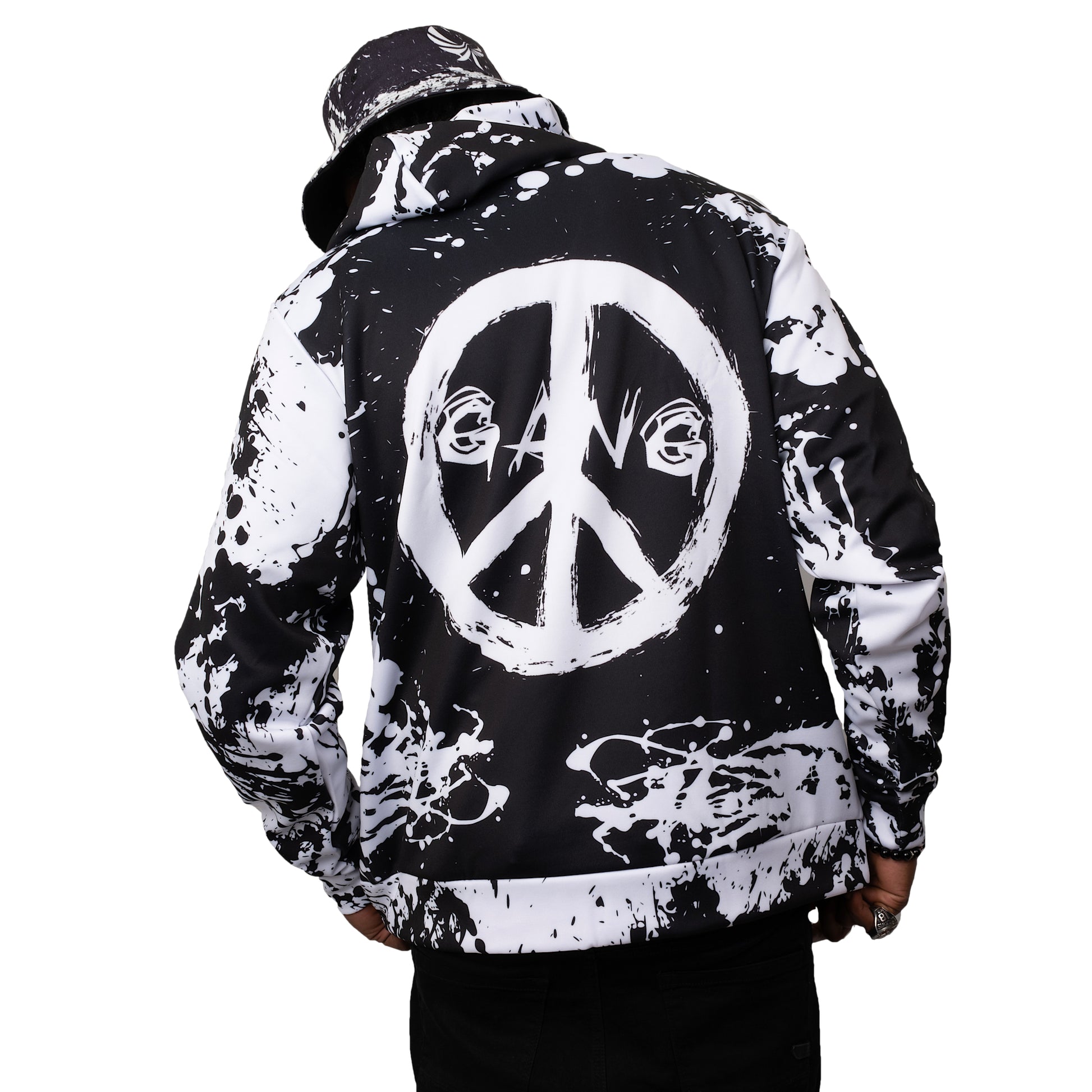 Rep PEACE GANG in this eye catching pullover hoodie. This hoodie is a great addition to any streetwear closet and to really standout and make a statement we have designed matching high top sneakers, facemask and bucket hat to complete the fit!