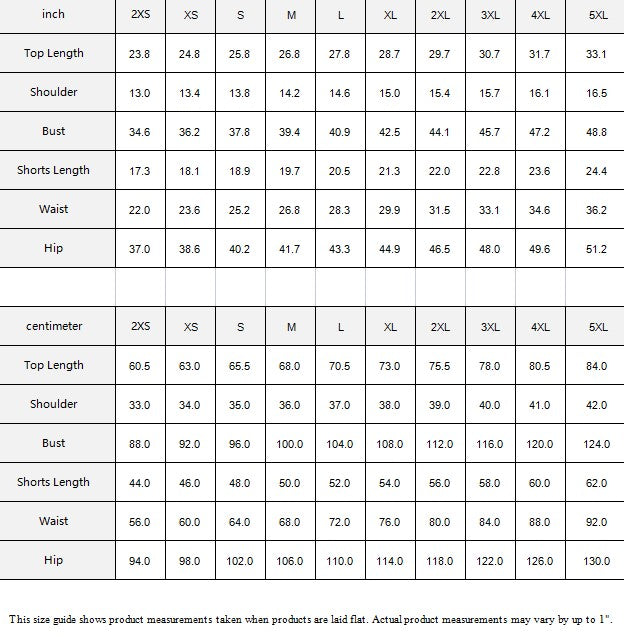 | Shorts Length | 44.0 | 46.0 | 48.0 | 50.0 | 52.0 | 54.0 | 56.0 | 58.0 | 60.0 | 62.0 |